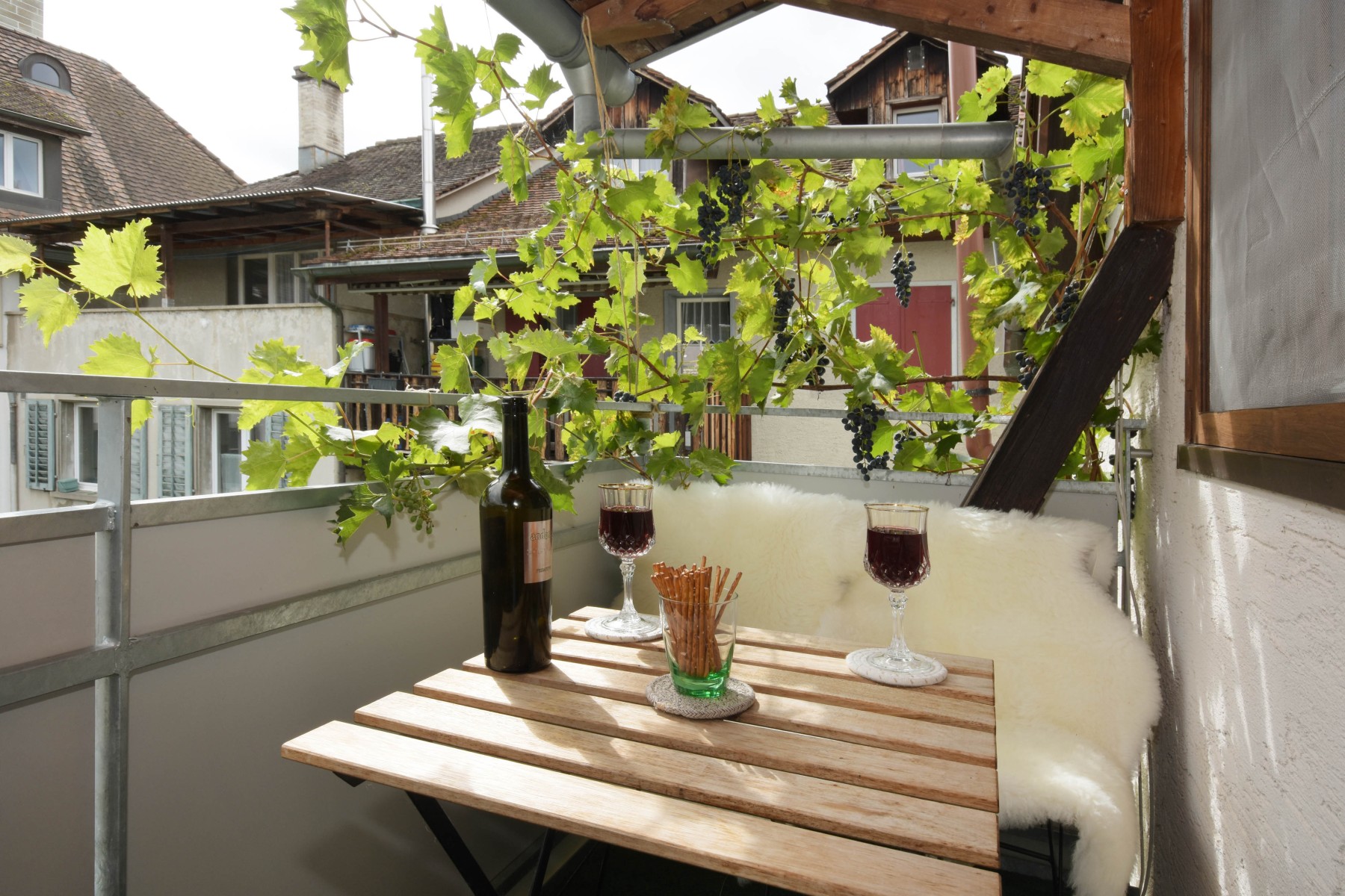 Überdachter Südbalkon, lädt zum sonnigen Frühstück als auch gemütliche Abendstunden ein.