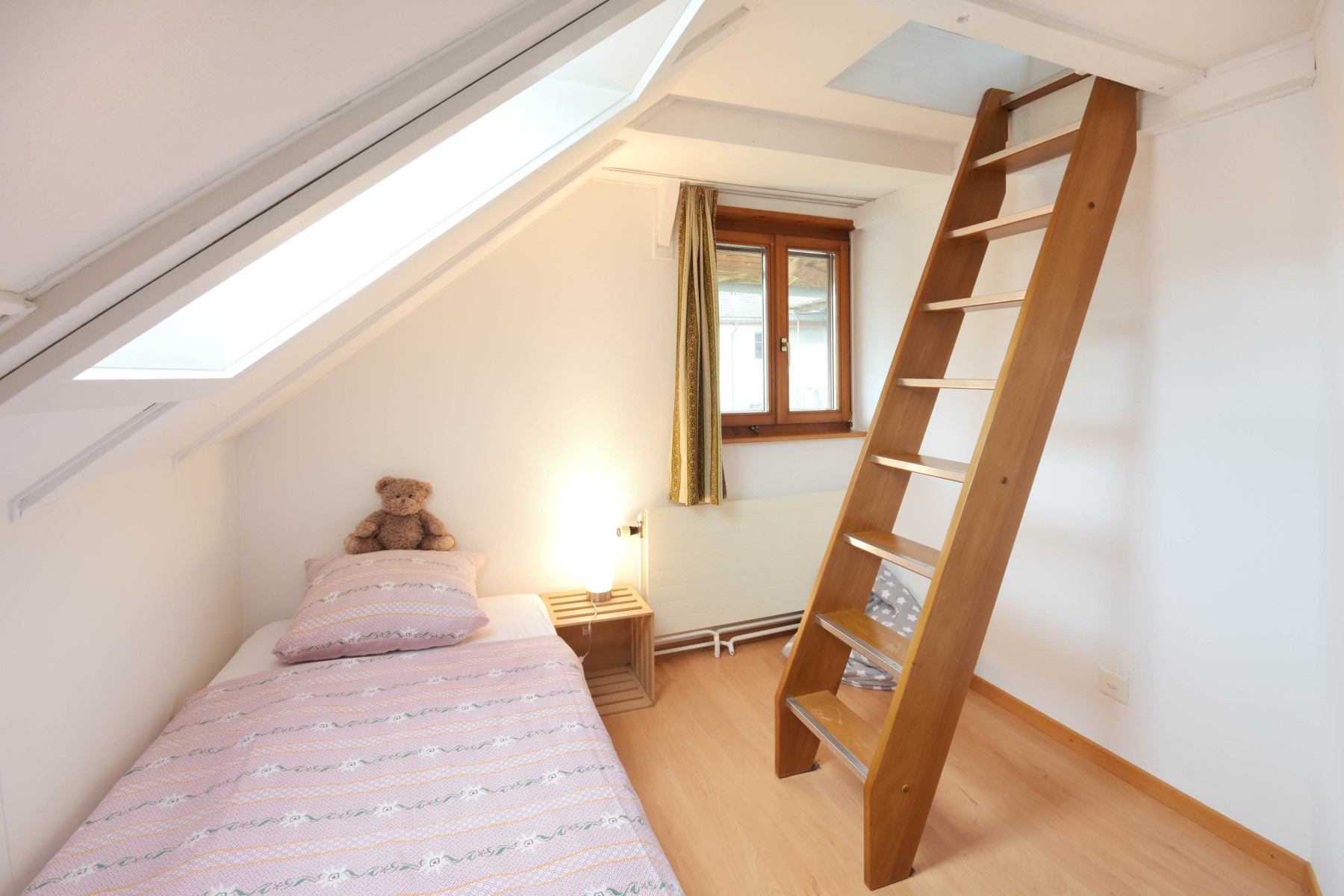 Unterm Dach, Lattenrost mit Matratze.